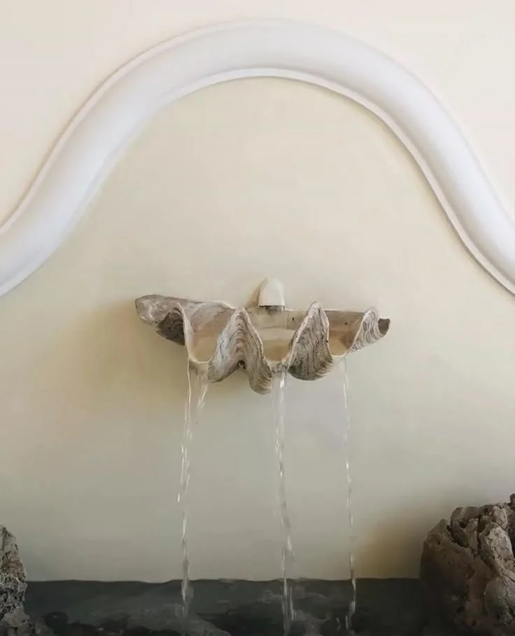 The soft sounds of trickling water combined with the natural stone surroundings make the space feel like an urban retreat.